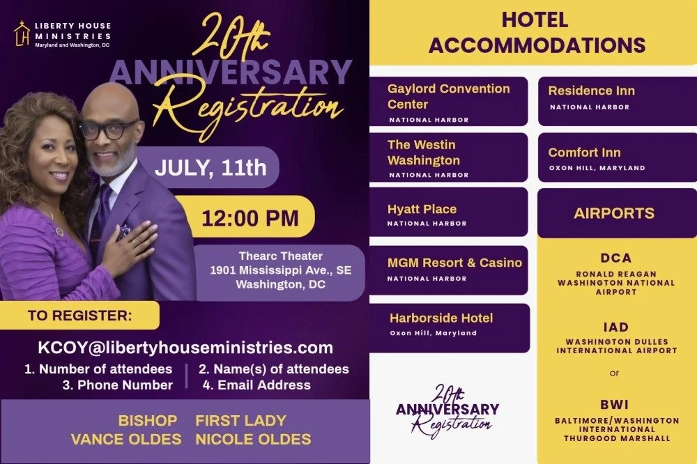 Welcome to Liberty House Ministries, where freedom lives through Jesus Christ! Under the leadership of Bishop Vance Oldes and First Lady Nicole Oldes, we are a vibrant, spirit-led church with two locations dedicated to reaching hearts, transforming lives, and glorifying God through authentic worship and community.